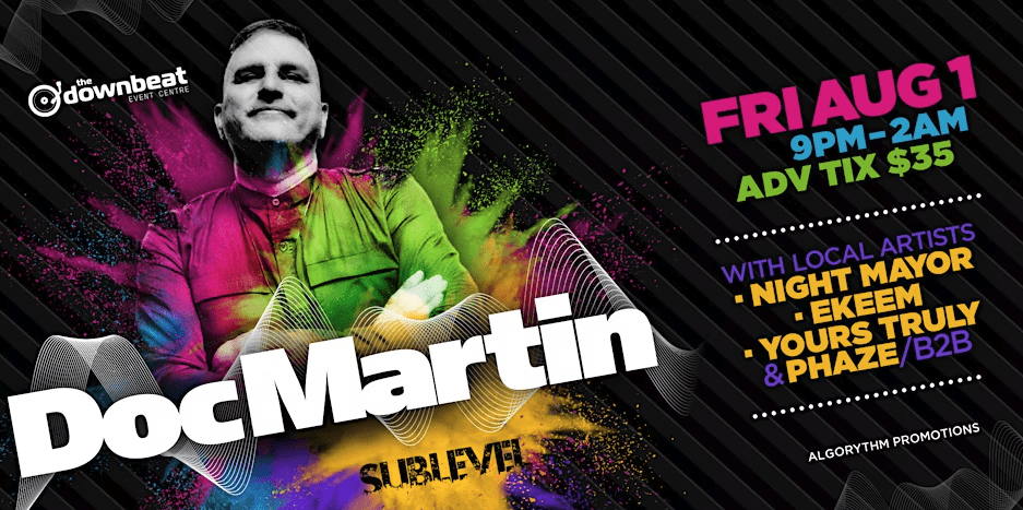 Also… if you are looking for something to do on the Friday night, on August 1st, the Downbeat will also be presenting West Coast house music legend Doc Martin…