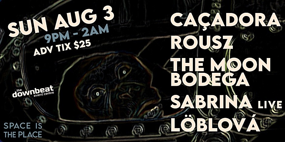 Sunday, August 3: 9pm-2am: featuring a live performance by Sabrina (Campbell River) plus DJs Caçadora, Löblová, Rousz and The Moon Bodega. Deep/Hypnotic/Psy-Tech/Techno.